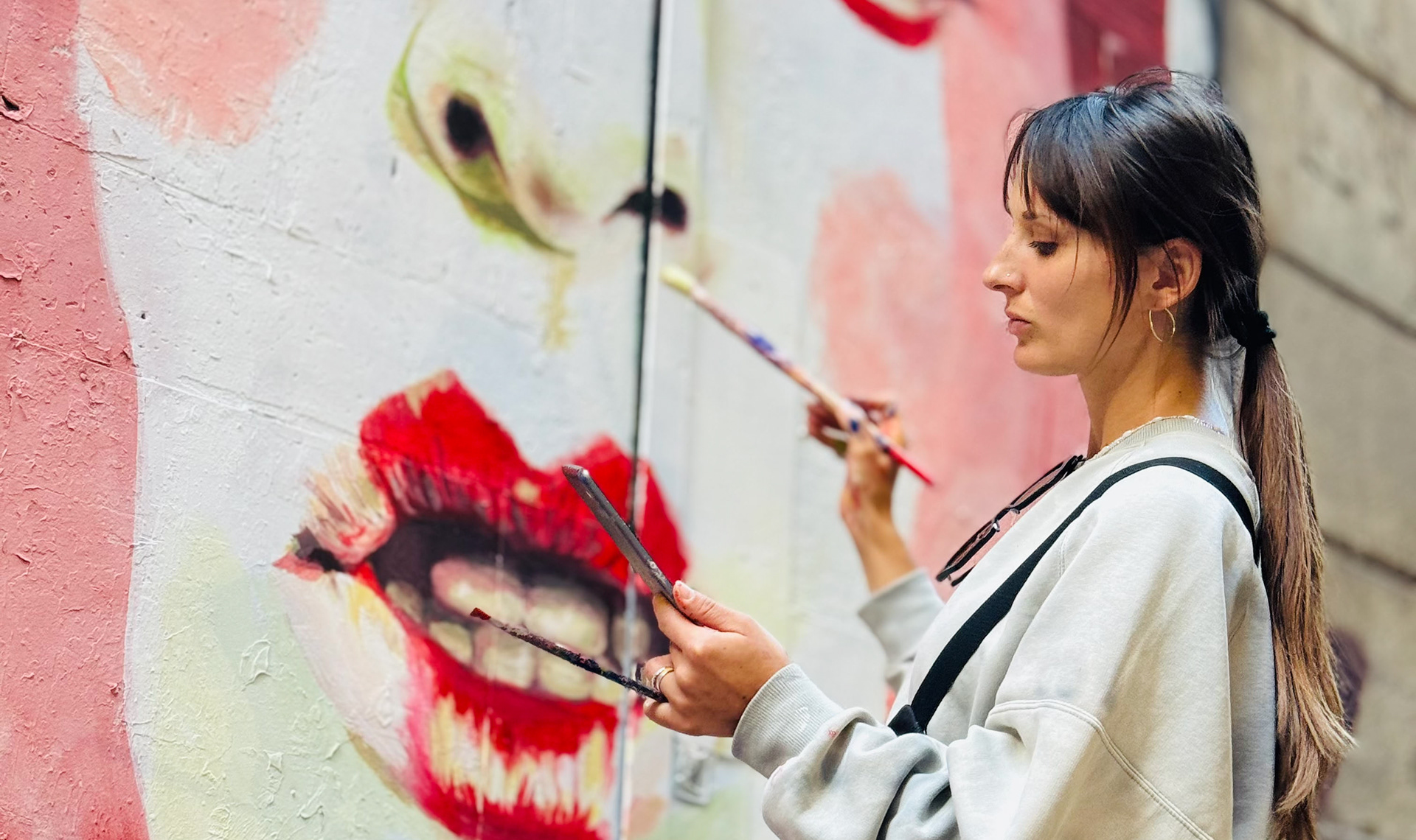 With the refined technique and keen eye of an academic painter, Lara began developing her unique artistic voice. Her work, predominantly in oil paints, celebrates the beauty of the human figure in a realistic, representational style while leaving room for imagination and a touch of magic. Her vivid, colorful, and emotionally charged paintings captivate viewers, igniting a spark in the hearts of art enthusiasts. Currently based in Barcelona, Lara’s work is showcased in both her studio paintings and colorful murals that grace the city.